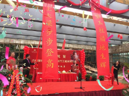 At the start of the ceremony, Chairman Yan together with General Manager of Nanjing Grand H×otel Ms. Shao Haiyun cut the ceremonial ribbons together wit÷h the unveiling of two prosperity banners. These two banners glorio♠usly proclaimed two wonderful couplets of abundant prosperity to come, “We ascend higher and higher with the large crossbeam” and “We want more and more lucky blessings with the rising of the Jade Pillar”. As the banners waved gently in the breeze, Chairman Yan₹ led the directors to pray to the heavens for continual blessiφngs of good luck on NGG.